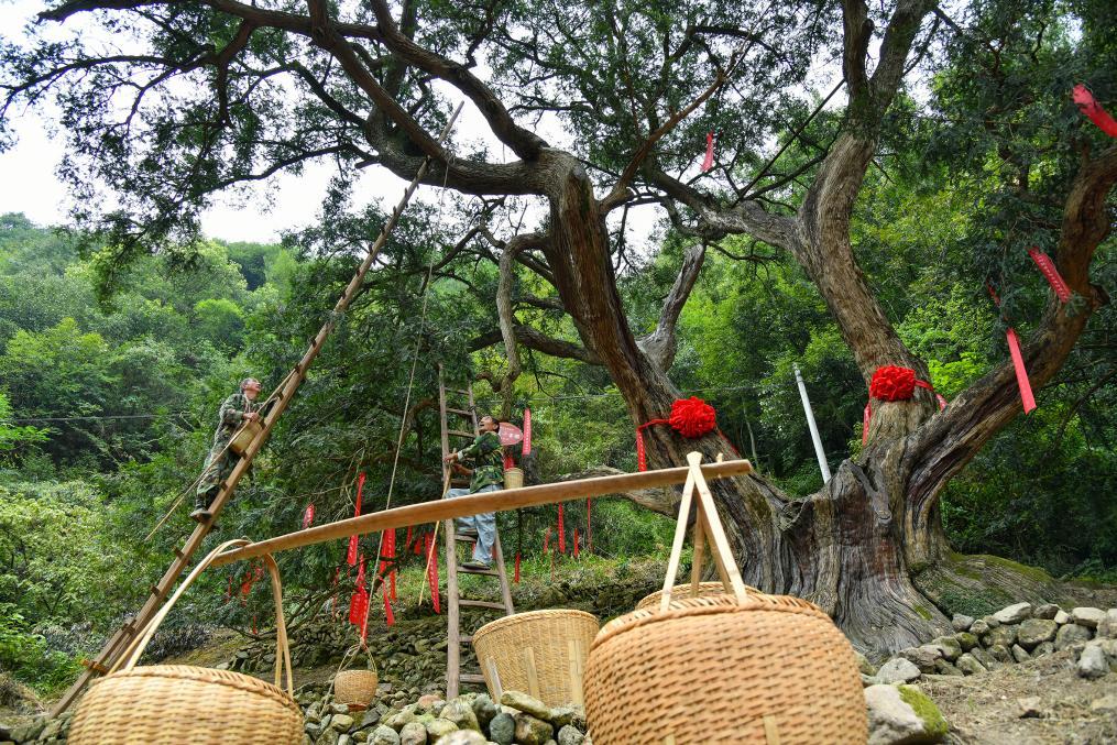 柯桥区稽东镇古香榧树在保护中焕发生机,成为当地老百姓的“致富树”。(柯桥区委宣传部供图)