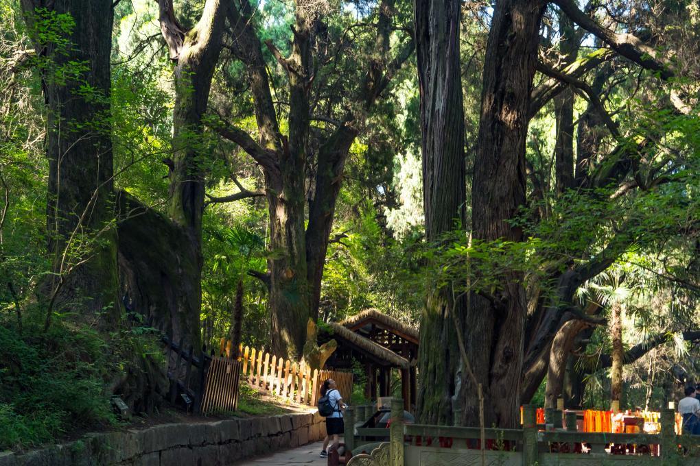 翠云廊剑阁段现有古树7803株,其中古柏7778株,这些古柏最高树龄2300余年,绝大部分是一级古树。