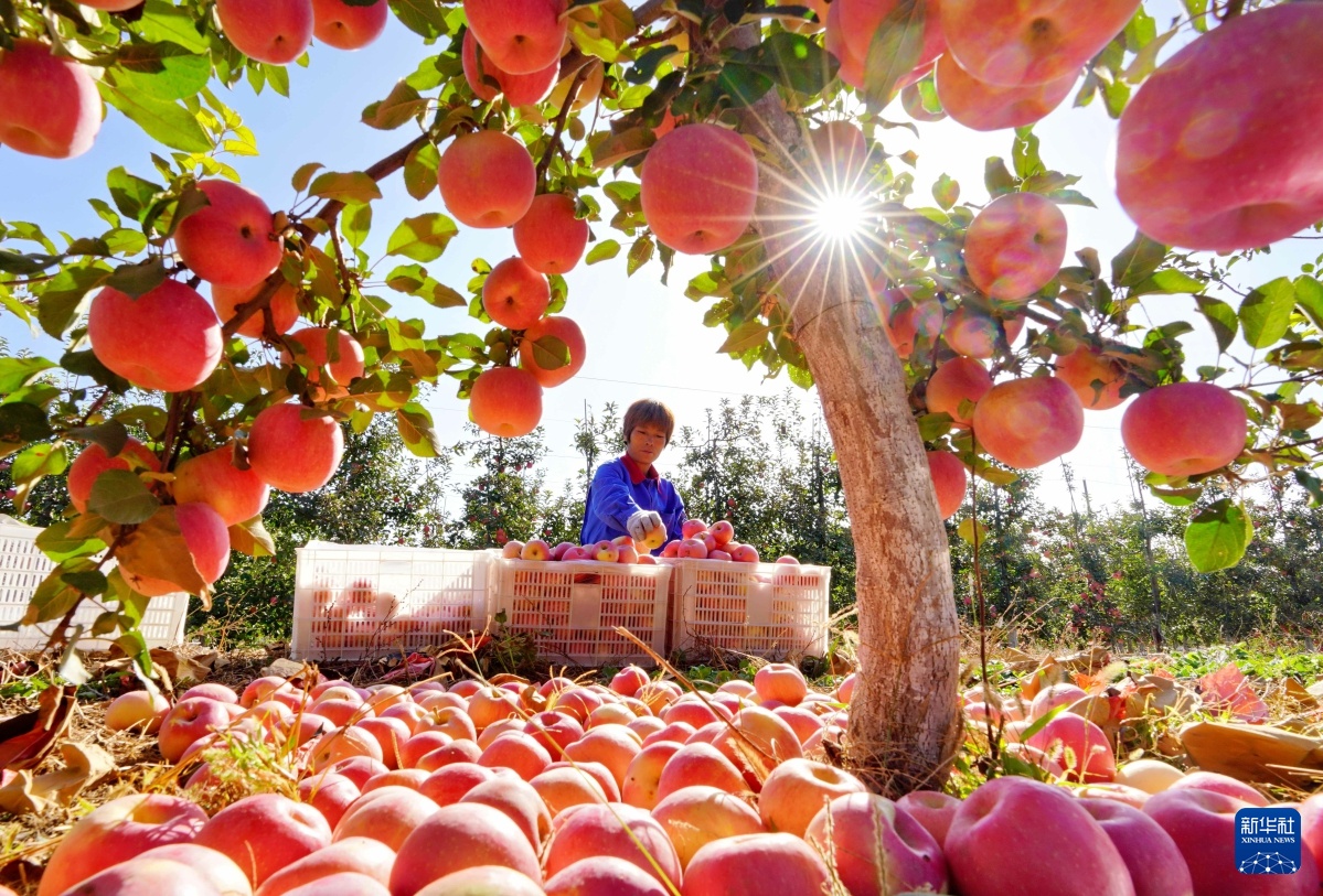 2019年10月25日,滦州市王店子镇的一位果民在分拣刚采摘的苹果。新华社记者 杨世尧 摄