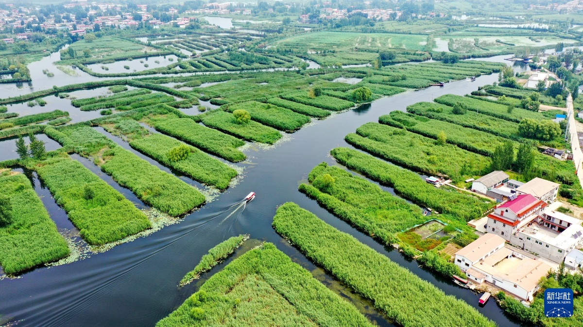 2021年8月14日拍摄的白洋淀风光(无人机照片)。新华社记者 牟宇 摄