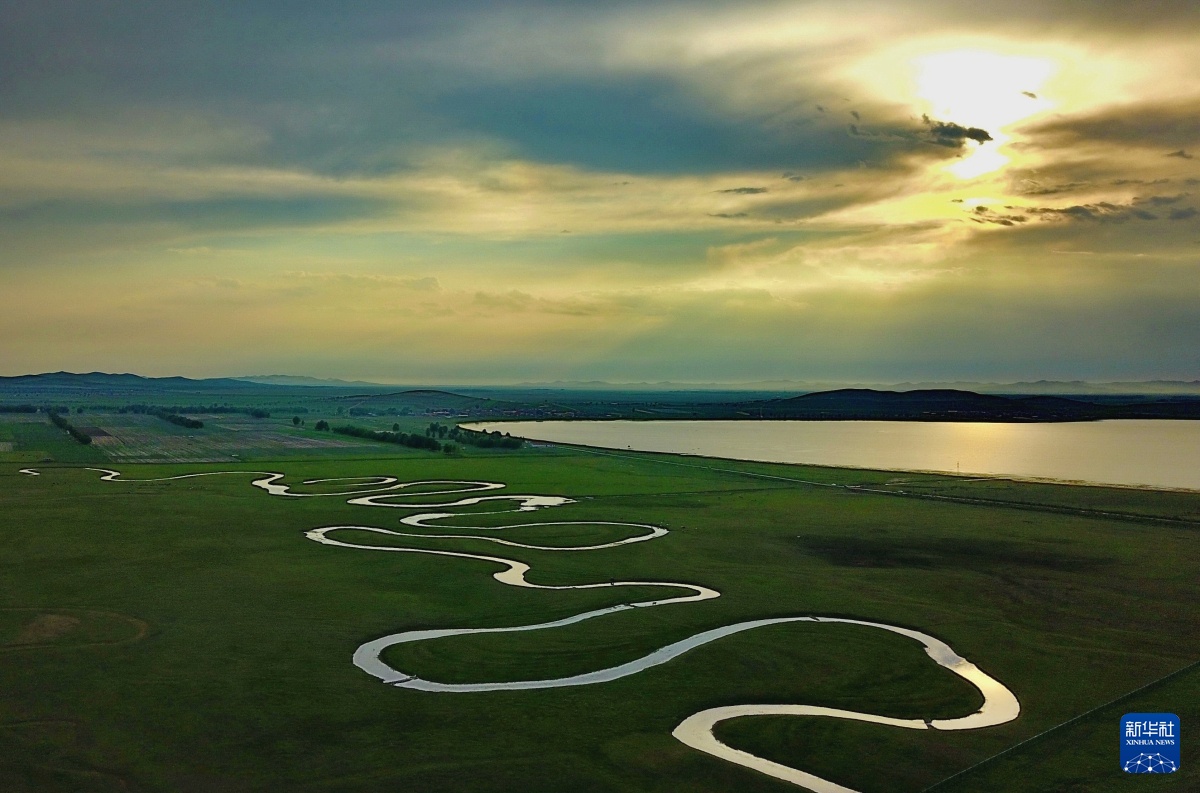 2017年7月15日,夕阳下的闪电河国家湿地公园。新华社记者 杨世尧 摄