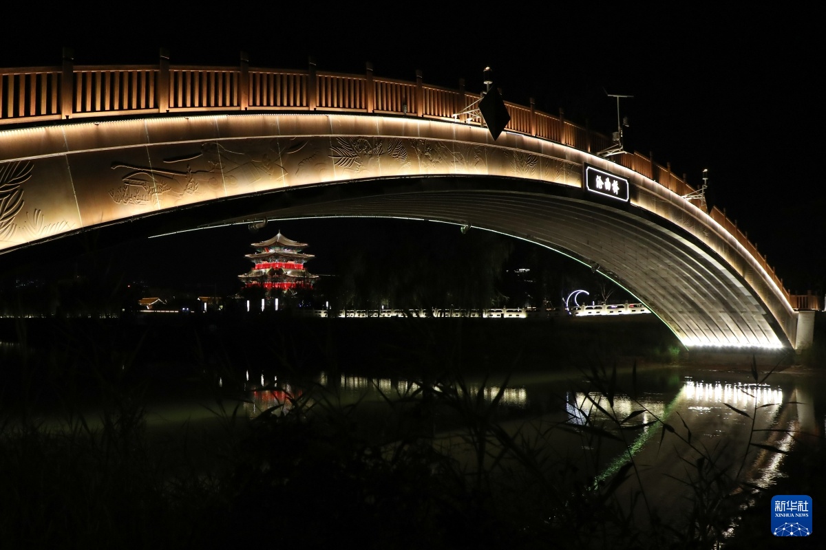 2023年10月26日拍摄的河北省沧州市沧曲桥和南川老街夜景。新华社记者 骆学峰 摄