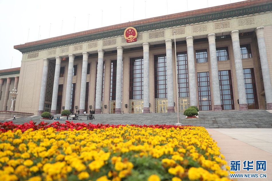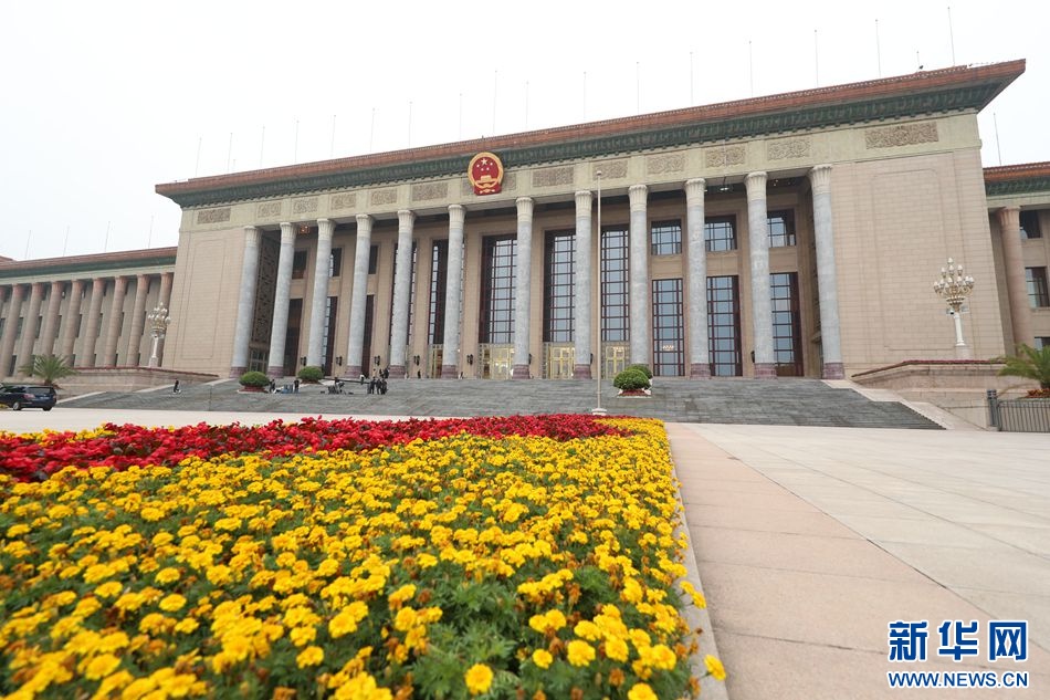 9月29日,中华人民共和国国家勋章和国家荣誉称号颁授仪式在北京人民大会堂金色大厅隆重举行。这是当天的人民大会堂外景。新华网记者 陈杰 摄