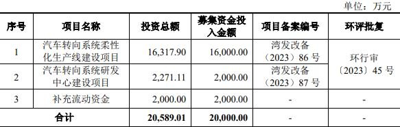 公司原拟募集资金20,000.00万元,计划用于汽车转向系统柔性化生产线建设项目、汽车转向系统研发中心建设项目、补充流动资金。
