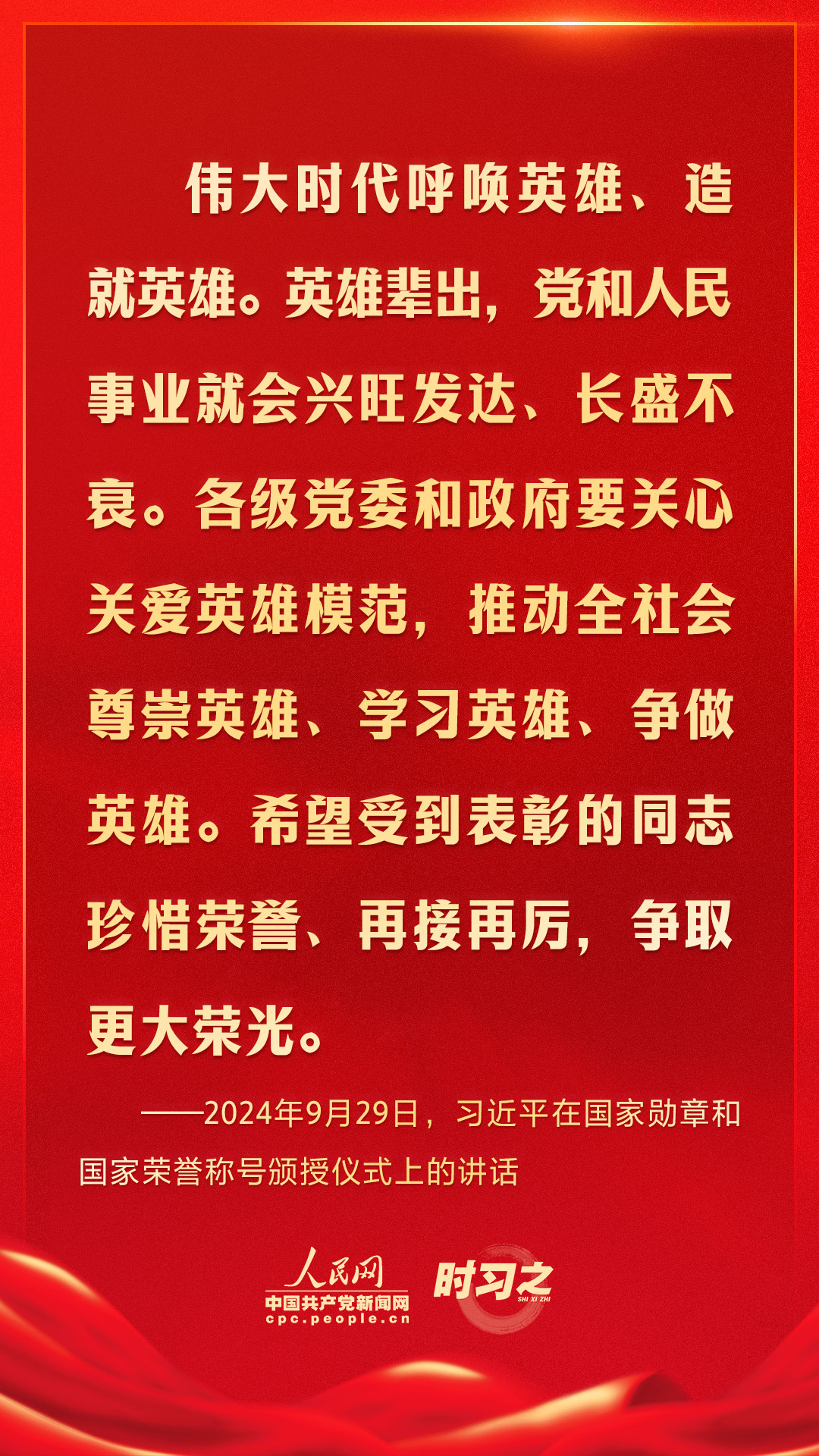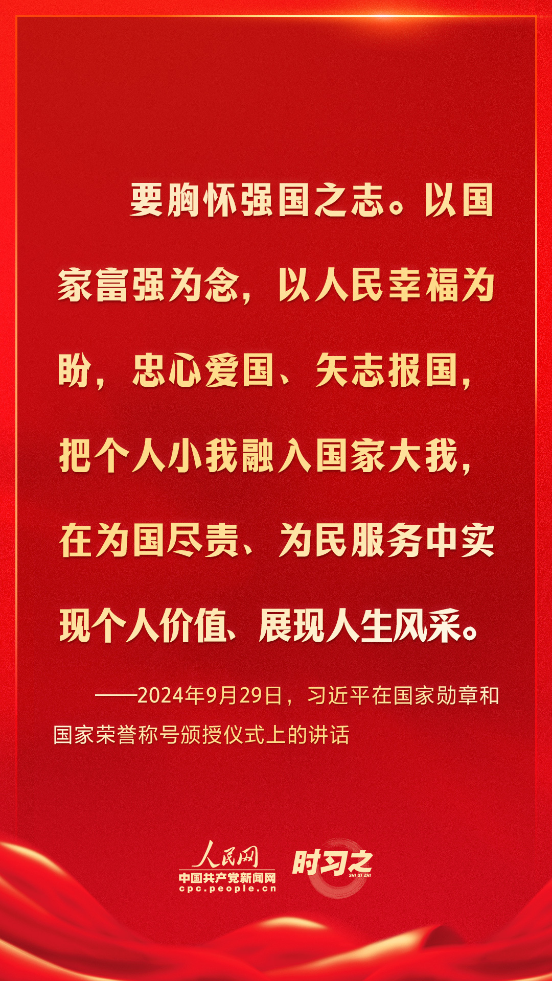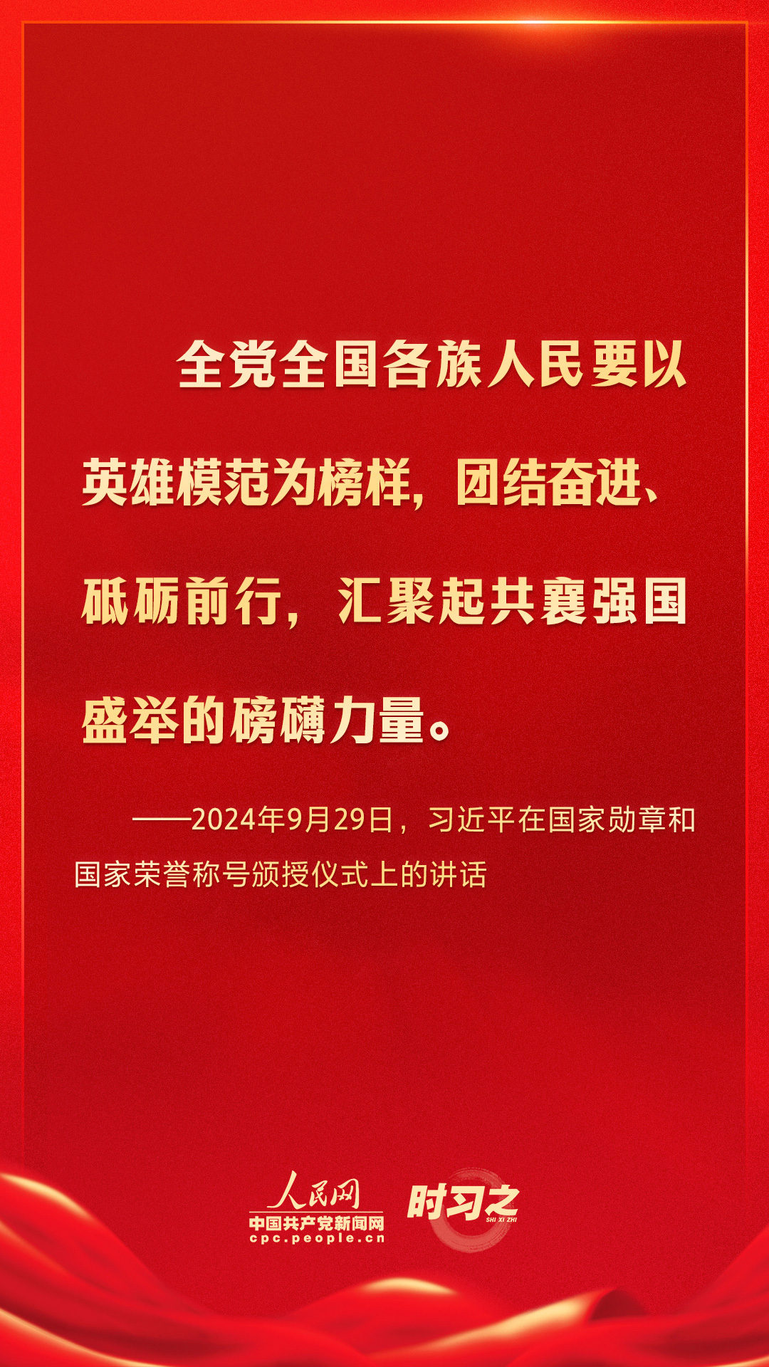 2024年9月29日上午,中华人民共和国国家勋章和国家荣誉称号颁授仪式在北京人民大会堂金色大厅隆重举行。中共中央总书记、国家主席、中央军委主席习近平向国家勋章和国家荣誉称号获得者颁授勋章奖章并发表重要讲话。