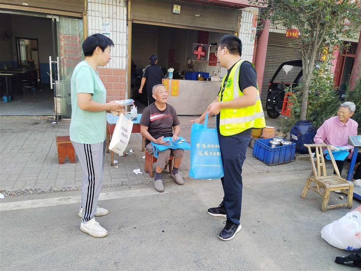 工作人员在市场等人员密集场所,向过往群众发放各类宣传单页,讲解禁毒知识和防诈骗知识,让广大群众参与到平安建设和禁毒工作中来,为建设和谐稳定、无毒乡镇出一份力。