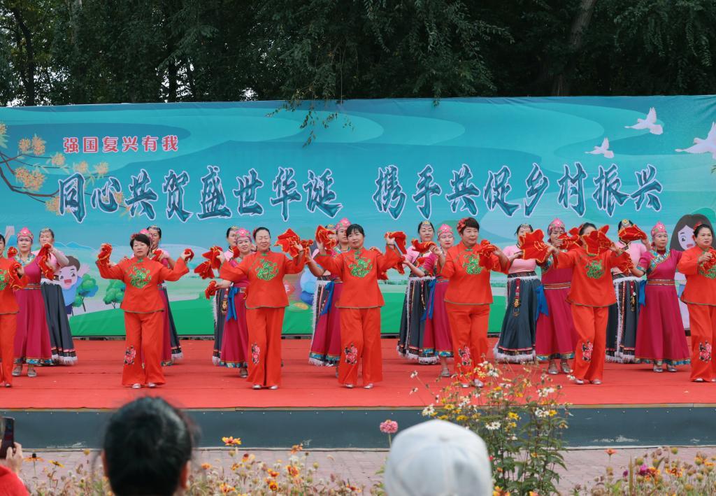 9月27日,库尔托别村村民们载歌载舞,喜迎国庆。新华社记者任沁沁 摄