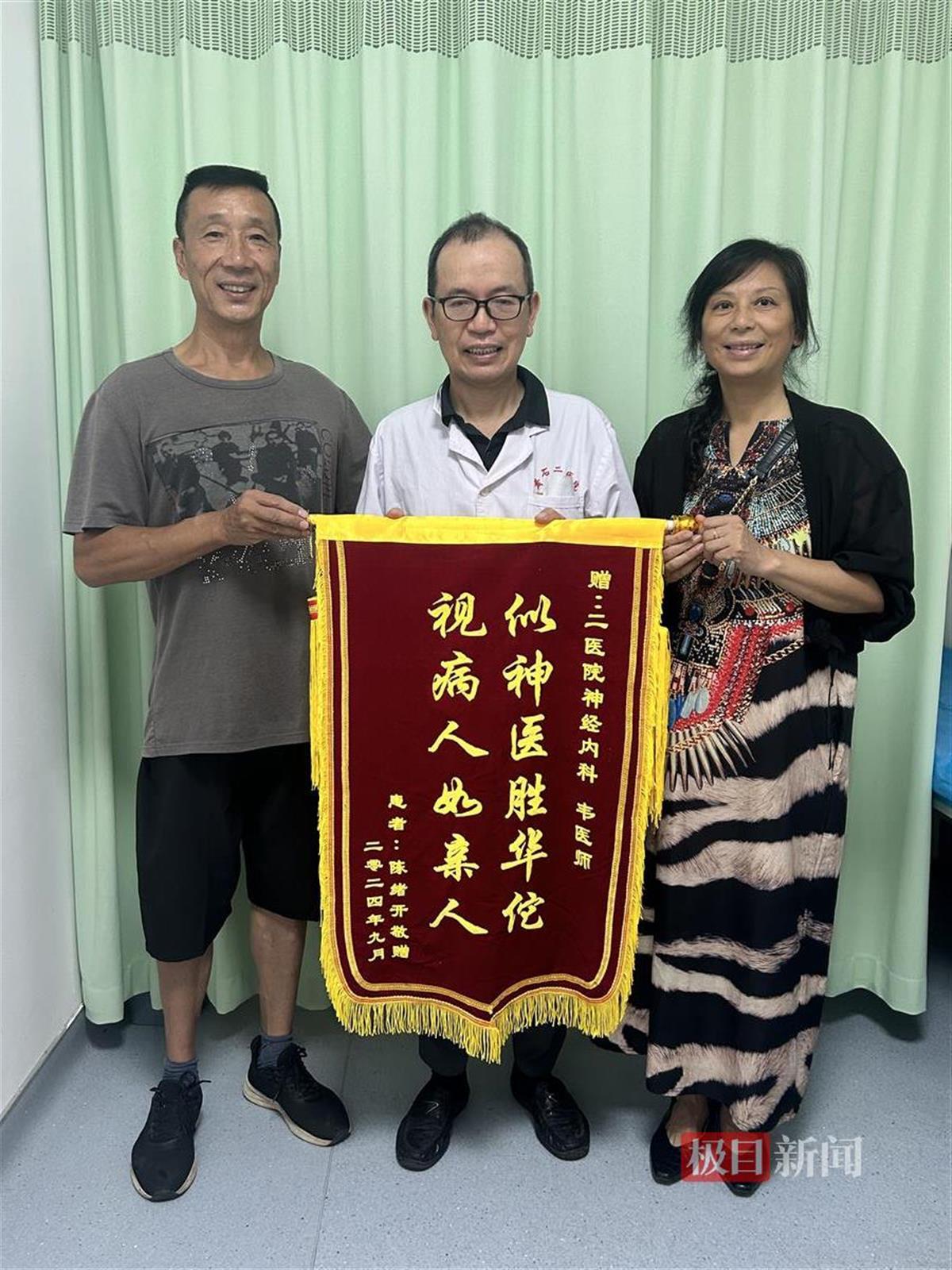 9月25日,陈爹爹顺利康复出院。为了感谢韦建林的贴心照顾,9月29日,陈先生代表父亲特意送来一面写着“似神医胜华佗,视病人如亲人”的锦旗,对韦建林表示感谢。