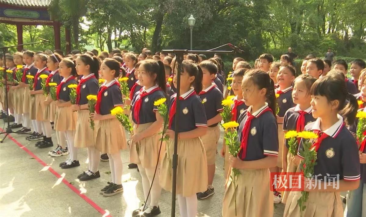 默哀毕,手持鲜花的少年儿童高唱《我们是共产主义接班人》,并致少年先锋队队礼。