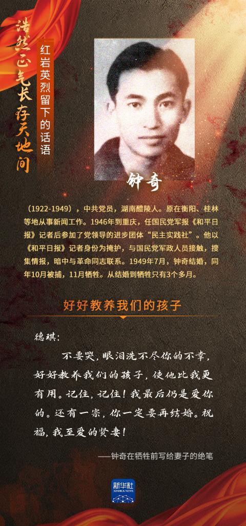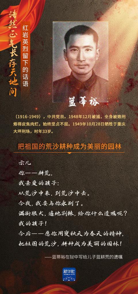 烈士纪念日,让我们一起重温红岩英烈江竹筠、王朴、刘国鋕、蓝蒂裕、钟奇留下的话语。