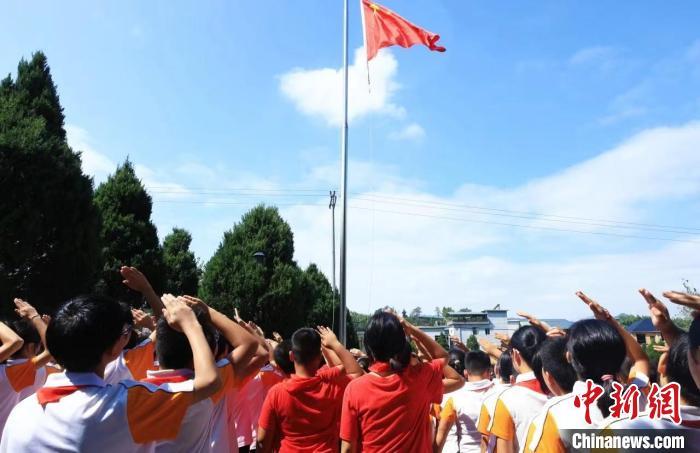 中新网丽水10月1日电(傅飞扬)10月1日,国庆节,浙西南群山深处,一场庄严的升旗仪式在国歌声中举行。13米高的旗杆上,一面鲜红的国旗迎着晨曦冉冉升起,在微风中高高飘扬。
