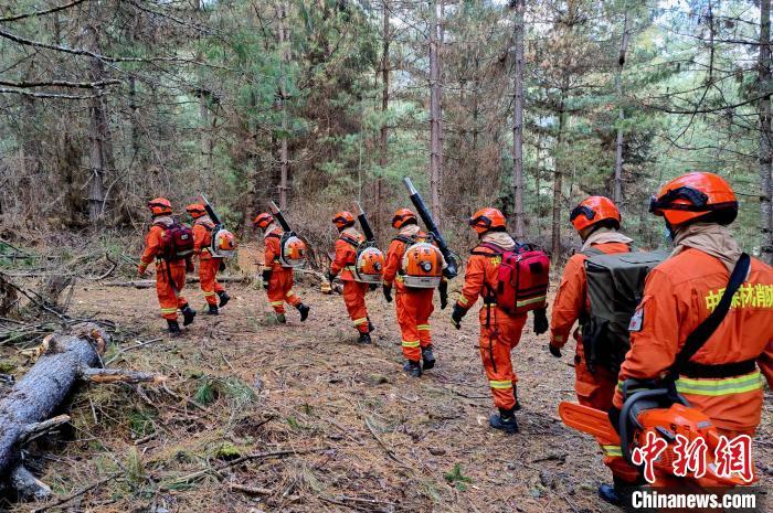 图为森林消防员在林内携装巡护。王泽栋 摄