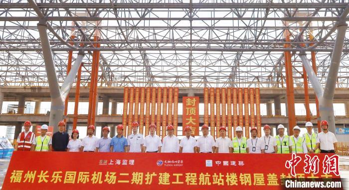 中新网福州10月1日电 (黄安莲)10月1日,在112个液压器的共同作业下,重达8000吨、投影面积约6.41万平方米的钢结构屋盖在福州长乐国际机场T2航站楼中心区顺利到达36米高度,至此,T2航站楼钢结构屋盖正式宣告封顶,这一标志性成果意味着航站楼主体钢结构工程基本完成,项目将全面迈入金属屋面及幕墙装饰装修施工阶段。