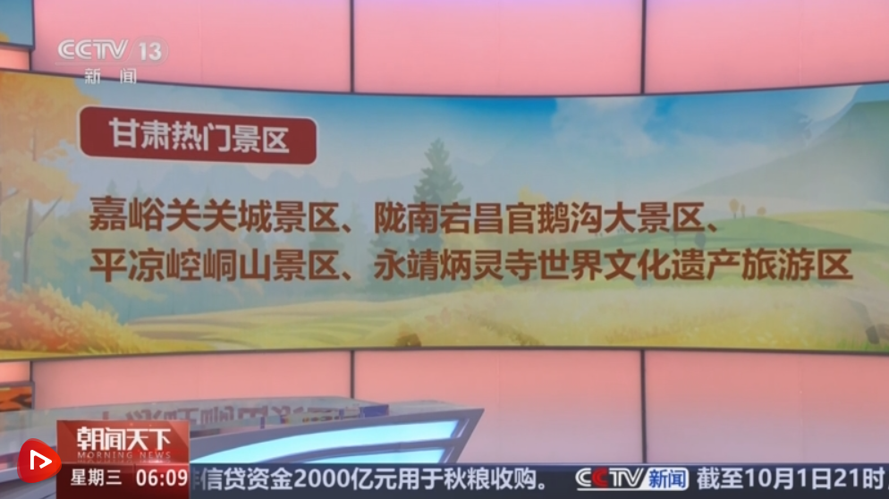 根据甘肃省文旅厅统计,10月1日,甘肃全省接待游客320万人次,同比增长16%。