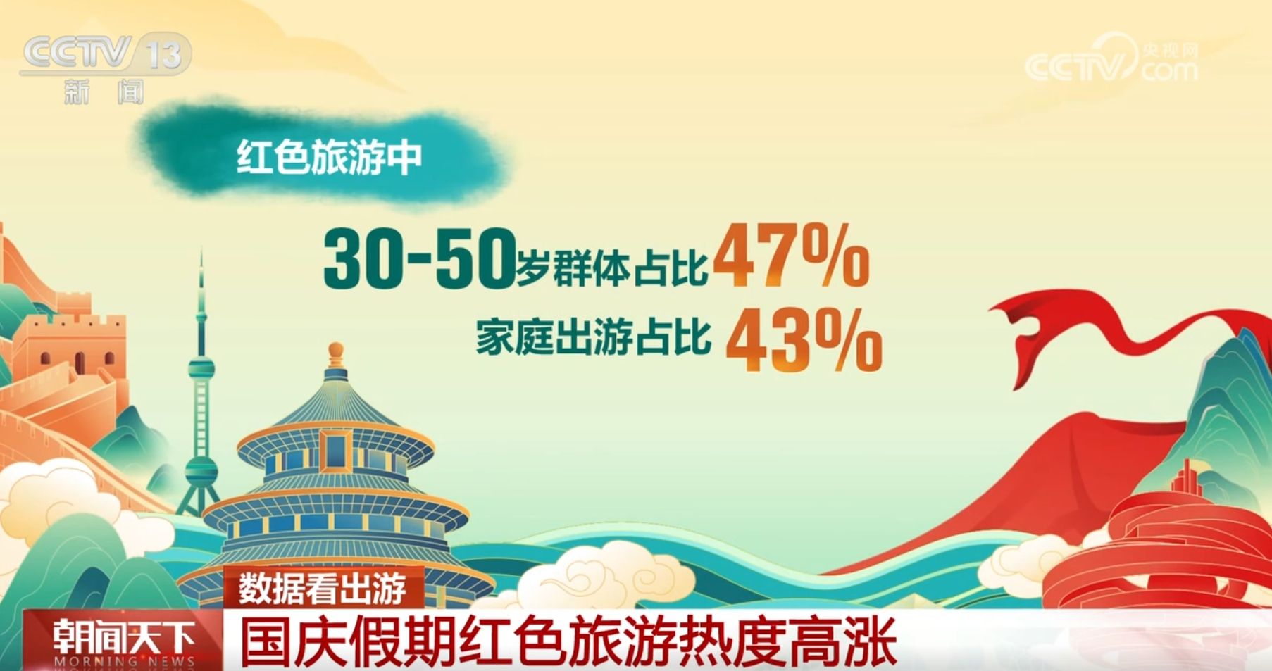 其中,30—50岁年龄段的群体是红色旅游的主力,占比达到47%,家庭出游占比也不低,达到了43%。假期第一天,天安门广场客流量比节前一周日均增长近6倍。