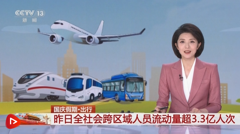 国庆假期首日全社会跨区域人员流动量超3.3亿人次
