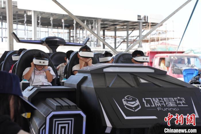 10月2日,江西南昌高新区瑶湖机场举行飞行嘉年华活动,不少市民和游客趁着假期来到这里感受航空文化。图为游客体验模拟飞行。中新社记者 吴敏 摄