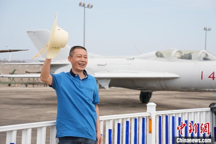 10月2日,江西南昌高新区瑶湖机场举行飞行嘉年华活动,不少市民和游客趁着假期来到这里感受航空文化。图为游客拍照留念。中新社记者 吴敏 摄