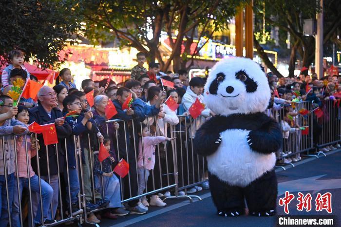 图为展演现场的熊猫布偶出场。中新社记者 刘忠俊 摄