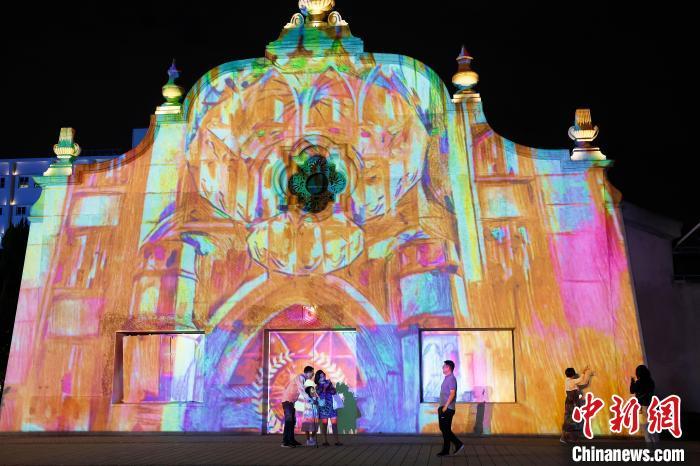 10月2日晚,民众在位于上海市长宁区延安西路1262号的上生·新所欣赏光影秀。近日,上海举办首届国际光影节,通过光影艺术激发城市活力与创新。中新社记者 殷立勤 摄