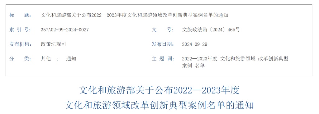此外,北京实现大型营业性演出活动“一件事”集成办理、福建泉州建立世界文化遗产保护市区联动机制、四川创新文化和旅游与金融深度融合机制等38个案例为优秀案例。