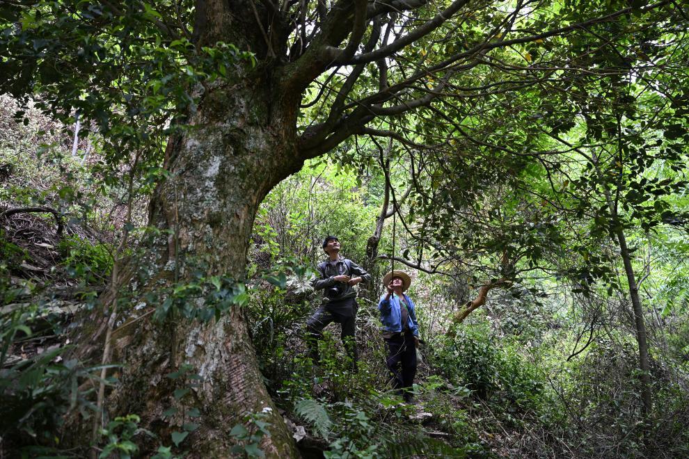 科研人员对植物新种华樟开展调查。(张宜 摄)