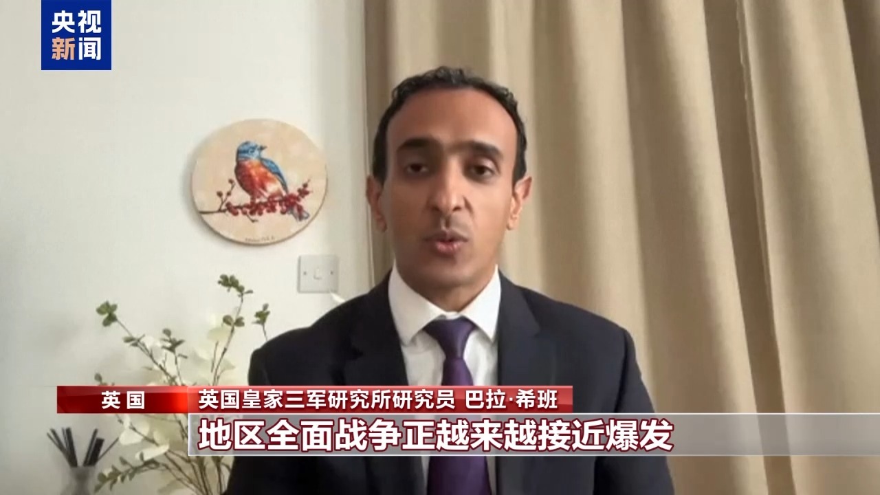英国皇家三军研究所研究员 巴拉·希班:地区全面战争正越来越接近爆发,主要是以色列和伊朗之间的冲突。现在以色列似乎已经准备好,升级与伊朗之间的军事对抗,我不确定伊朗将采取什么措施。