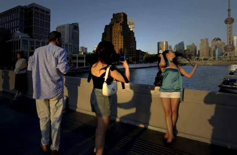 游客在上海苏州河畔留影。(龚建华摄,2024年)