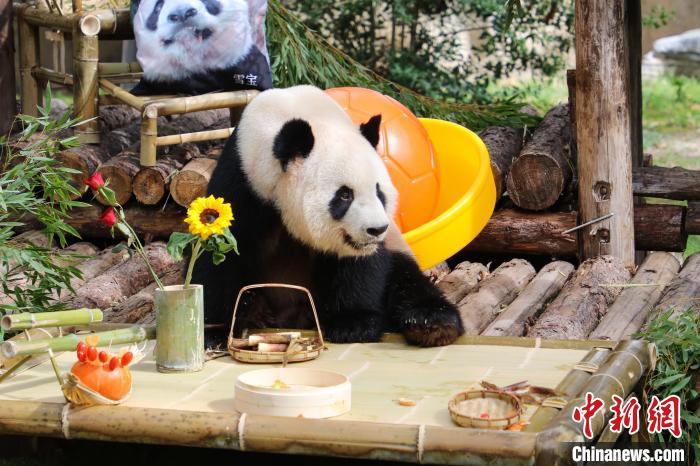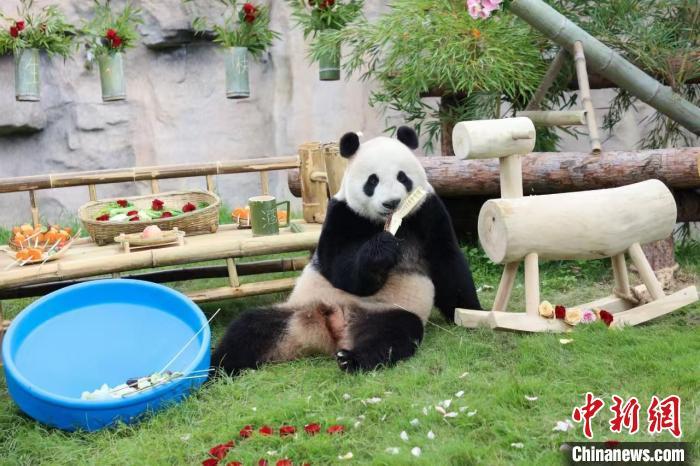 大熊猫康康4日过生日。(上海野生动物园供图)