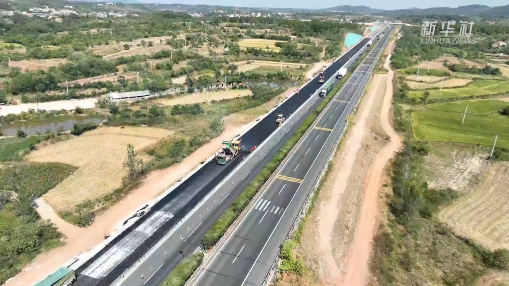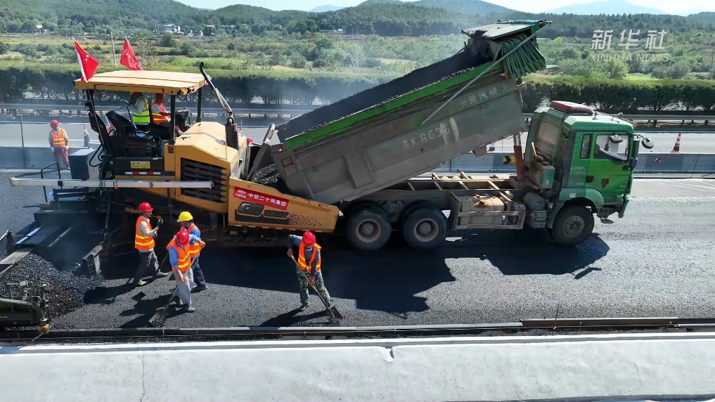 在湖北孝昌境内的京港澳高速公路改扩建3标段施工现场,摊铺机缓缓前行,冒着腾腾热气的沥青混合料从机器中均匀地铺撒在地面,热浪蒸腾。为确保后续交通导改工作顺利进行,国庆期间,项目现场投入近800名参建员工和300余套设备,开足马力加快路面施工。