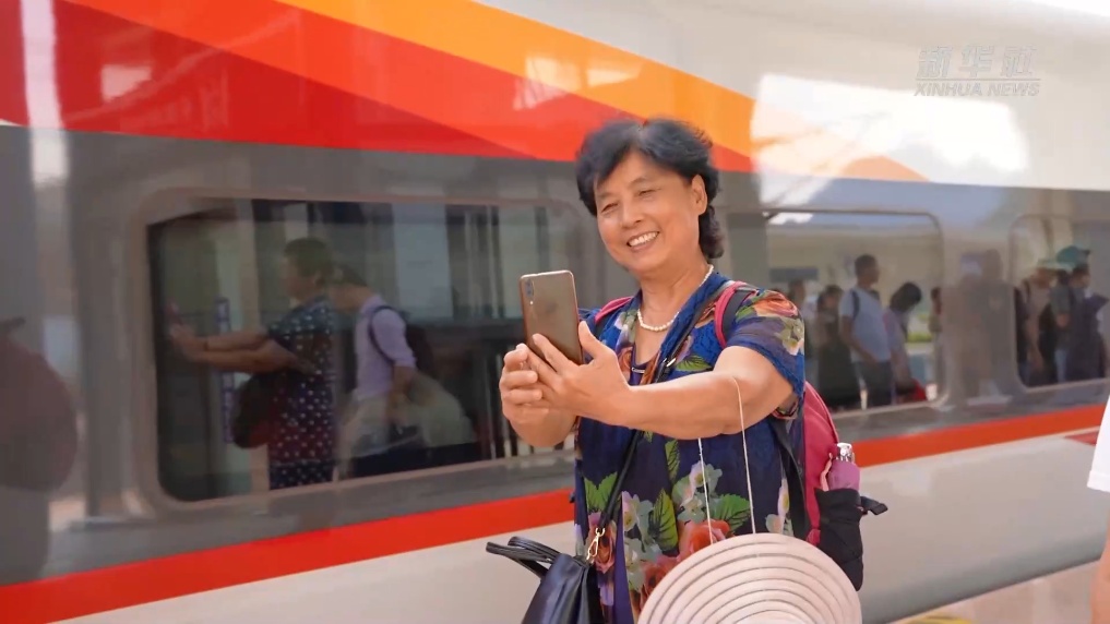国庆节前夕,广西第一代铁路女司机9位成员再次相聚,回到曾经工作过的地方,并在动车模拟驾驶舱如愿“开”上“复兴号”。