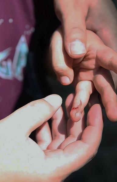 弟弟被锋利的枝叶割伤了手指。新华社发