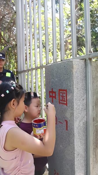 第一次见到祖国界碑的李文俊上前亲吻界碑,此刻,姐弟俩仿佛理解了父亲戍边的意义,懂得了戍边民警们的坚守与奉献。李勇随后带着姐弟俩清扫了界碑区域,并为界碑描红。
