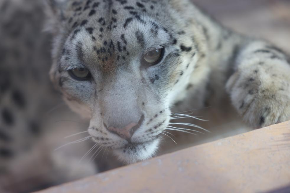 2023年3月3日,在青海省西宁市西宁野生动物园,一只雪豹伸出爪子和游客互动。新华社记者 李宁 摄