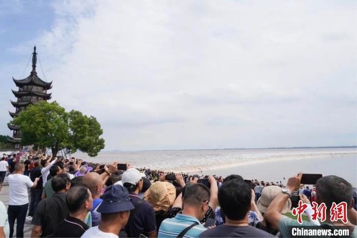 民众观看一线潮。海宁警方供图