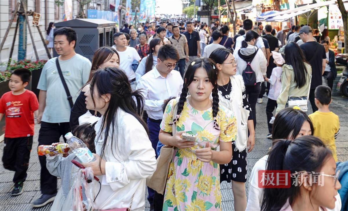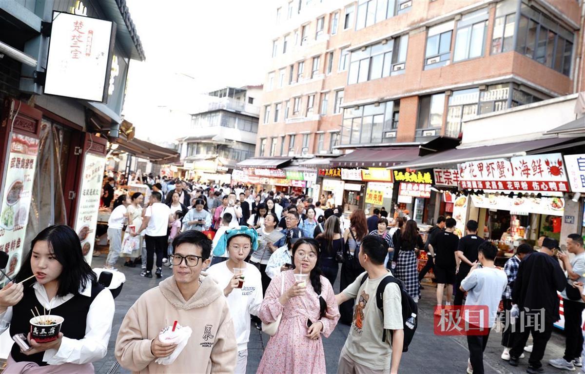10月4日,众多市民游客汇聚武昌古城,欢度国庆佳节。人们在古城新晋景区斗级营里,欣赏历史风貌;在户部巷内边逛边吃,品尝荆楚乃至全国美食;在汉阳门码头休息、欣赏长江的壮丽美景、聆听火车奔驰的声音,国庆假期,古城武昌迎来了旅游高峰期。