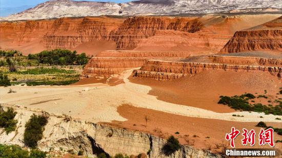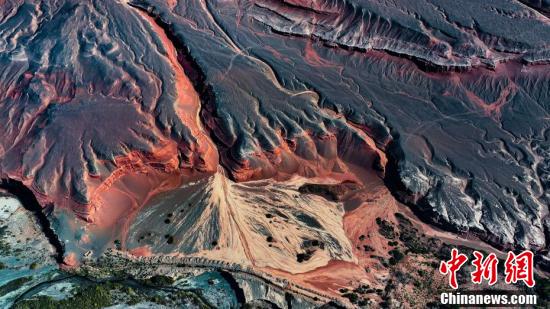 新疆托克逊县天山红河谷位于天山脚下一片荒芜的戈壁之中,空中俯瞰好似一条红色的飘带蜿蜒曲折,走进这里,仿佛进入如诗如画的秘境,不禁让人感叹大自然的鬼斧神工。