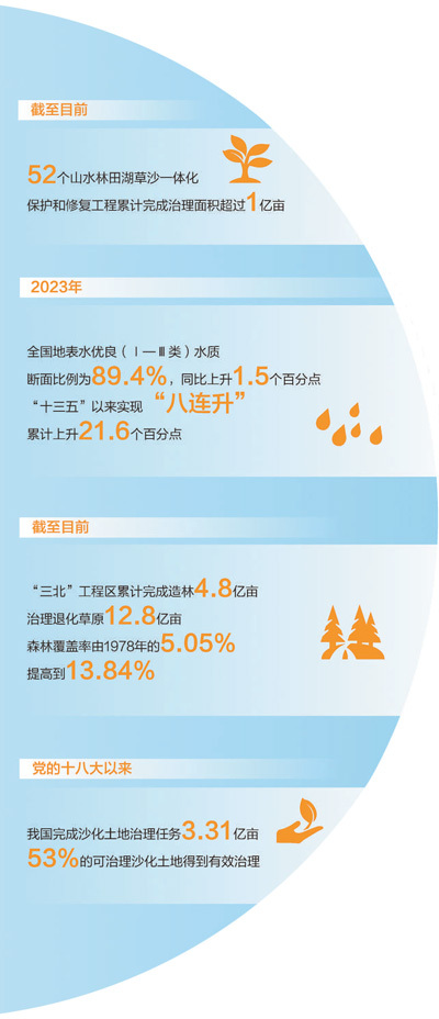 新中国成立75周年以来,特别是党的十八大以来,我国生态环境保护和建设取得举世瞩目的成就。党的二十届三中全会通过的《中共中央关于进一步全面深化改革、推进中国式现代化的决定》提出,健全山水林田湖草沙一体化保护和系统治理机制。