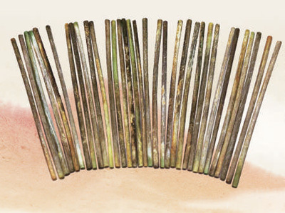 战国时期中山国中山成公陪葬墓出土的骨算筹。 河北博物院供图 |