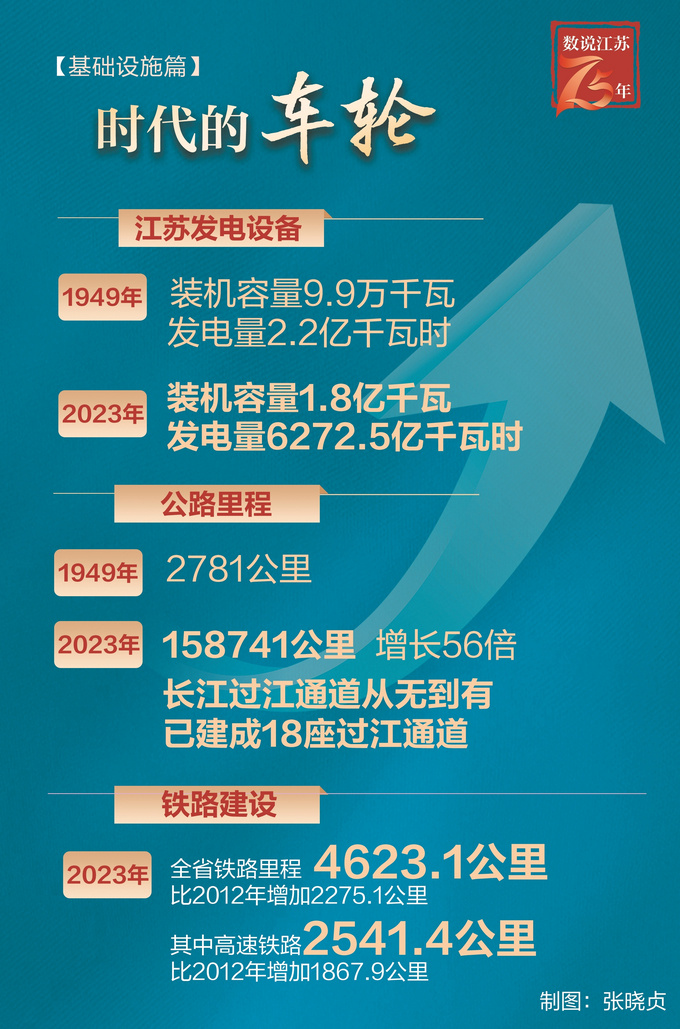历经七十五载,江苏绘制出基础设施日新月异的壮丽画卷。