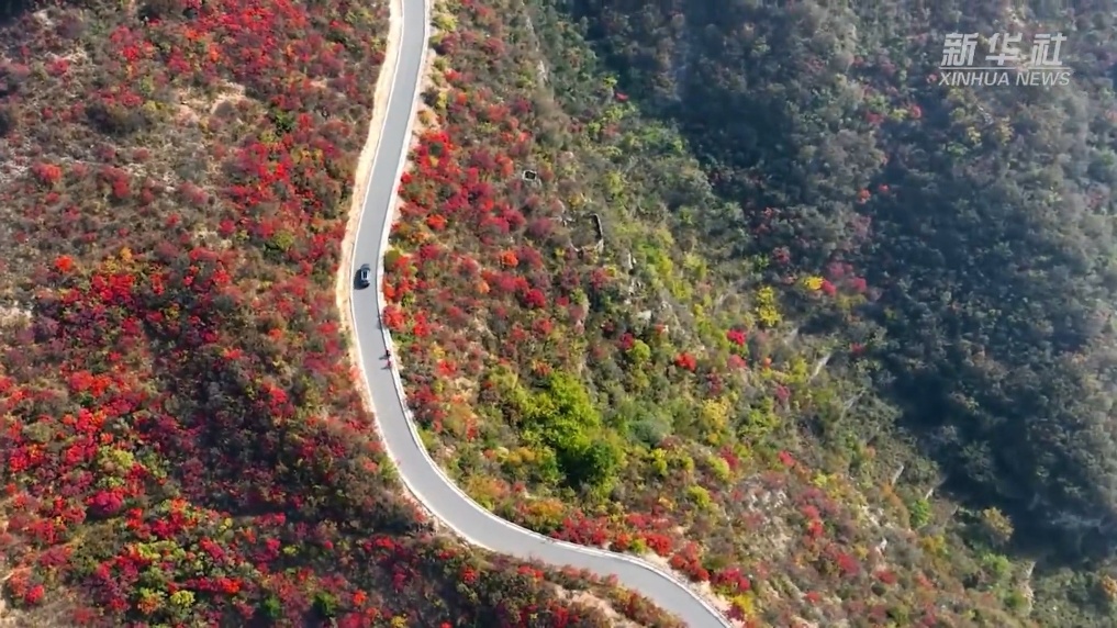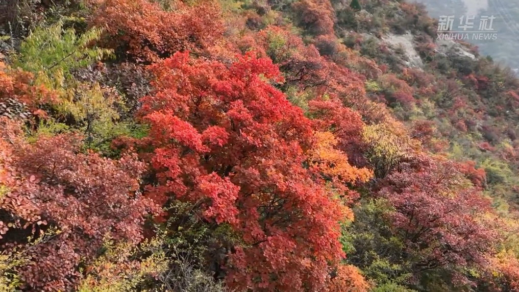 金秋时节,山西省长治市境内的太行山色彩缤纷,从空中俯瞰,漫山遍野的红叶如火似霞,美不胜收。