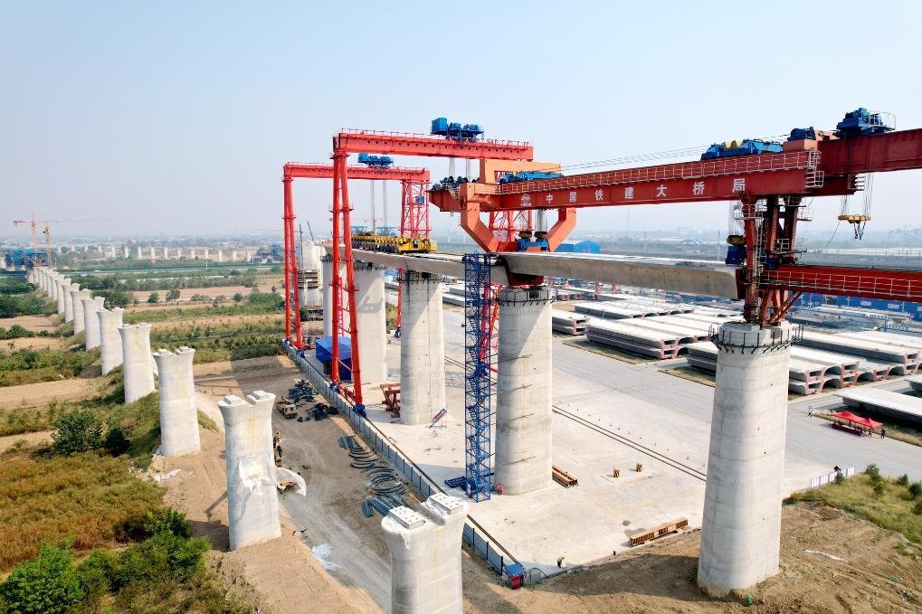 西延高铁联络线全线架桥机首榀箱梁架设完成。(受访者供图)