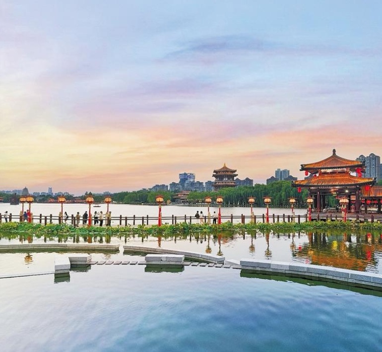 近年来,西安曲江池·大唐芙蓉园水利风景区贯彻落实河湖长制,构建完善管理体系,有效提升河湖管理效率与动态监管能力,同时注重水资源集约利用,水环境保护治理取得显著成效。“我特别喜欢这里的文化氛围。水舞光影秀《大唐追梦》太震撼了!站在湖边,浓郁的盛唐文化气息扑面而来,令人心旷神怡。”来自上海的游客吴天宇表示,这样的体验让他更加喜欢西安。