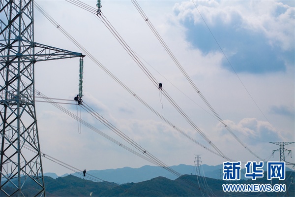 南方电网贵州六盘水供电局工作人员对500千伏新普线进行全线验收。新华网发(王飞 摄)