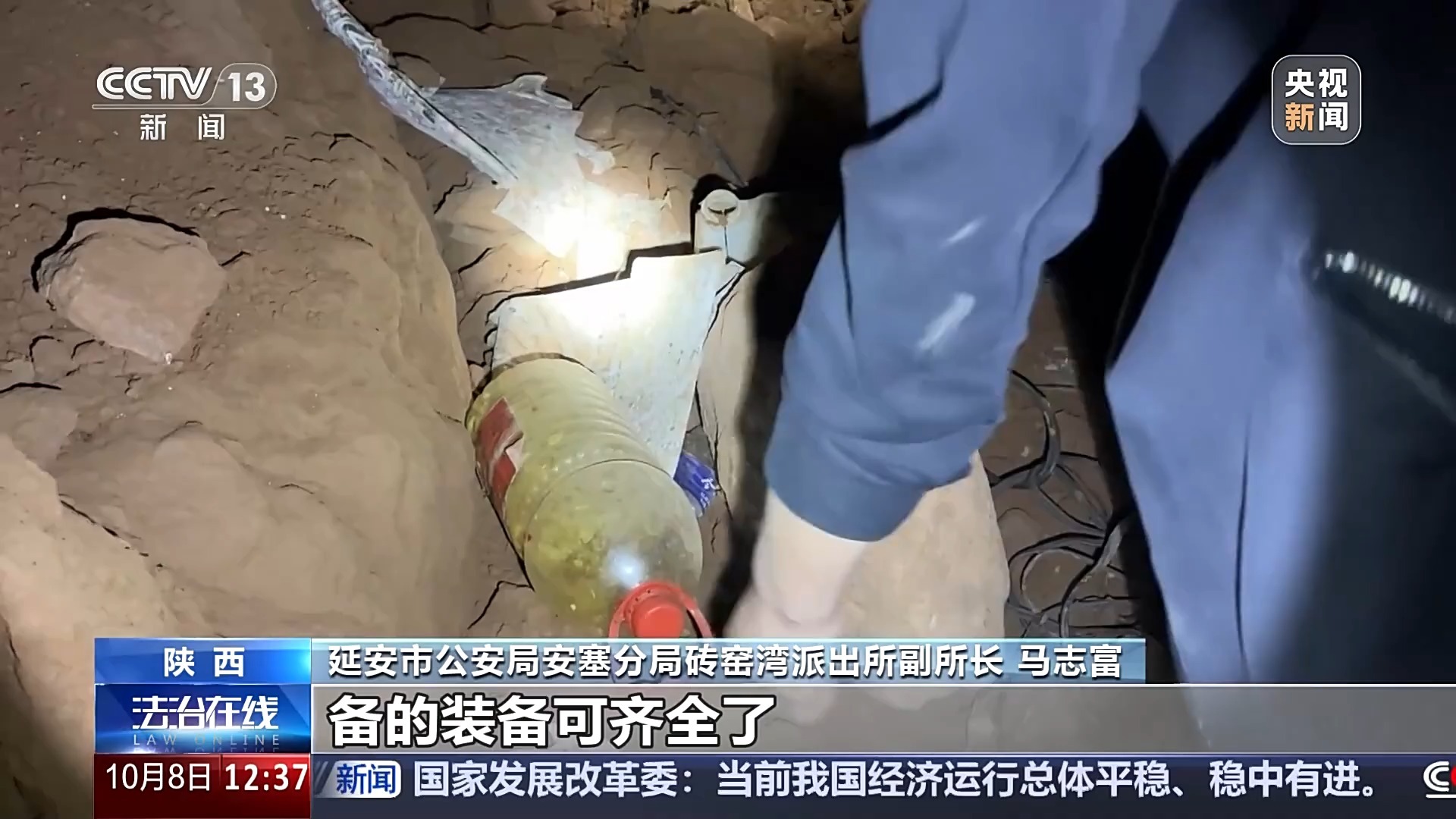 延安市公安局安塞分局砖窑湾派出所副所长 马志富:这么粗的那种电缆线,从洞口到里面全部通着,里边供氧照明,就像家一样。发电机,备的装备可齐全了,就像一个人在长期生活一样。