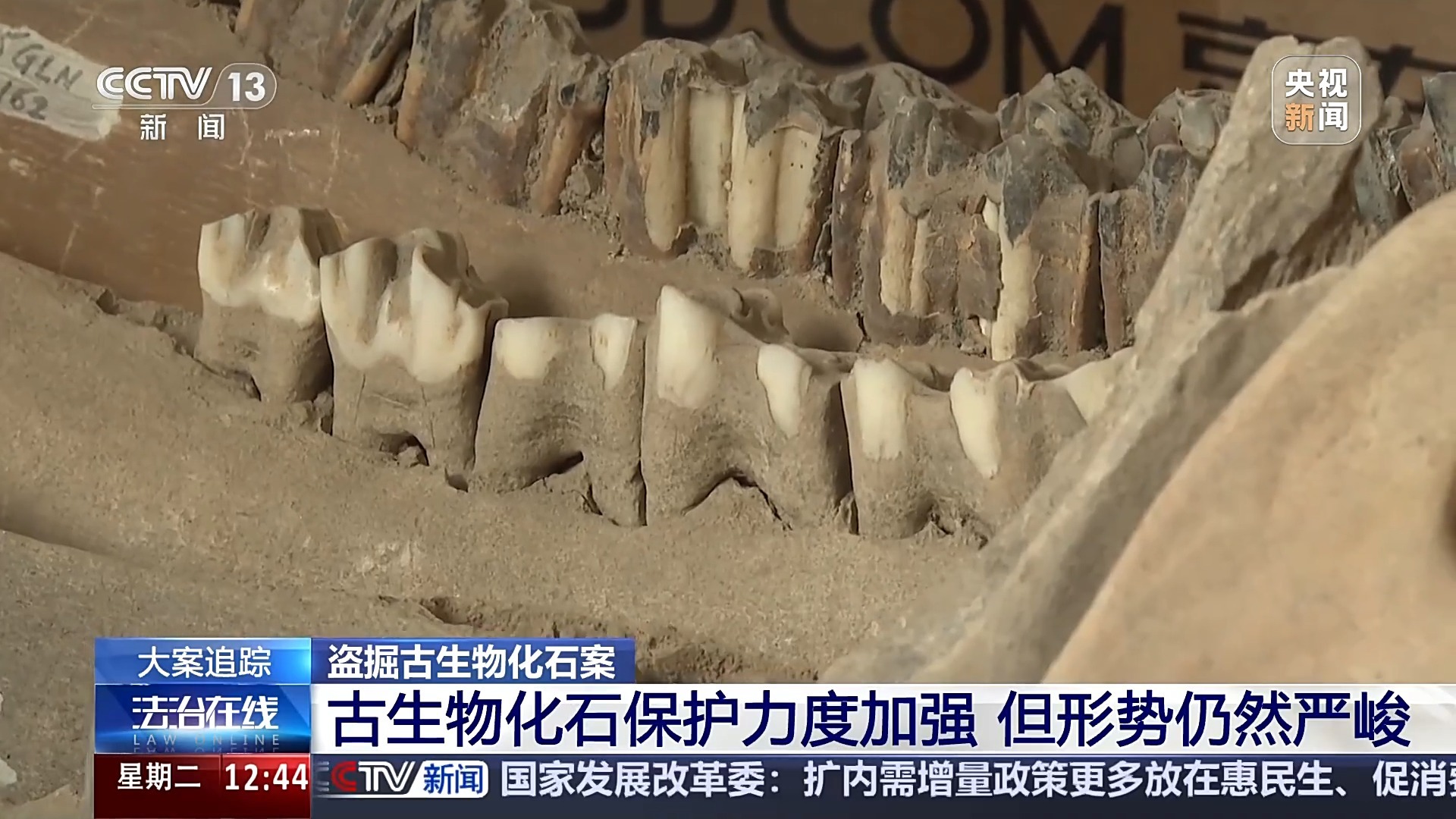 在西北大学地质学系,记者见到了多种不同时期的古生物化石,专家介绍,陕北地区的古生物化石大多埋藏在黄土高原深处的红黏土当中,本案中查获的三趾马化石,大约距今数百万年到一千多万年。