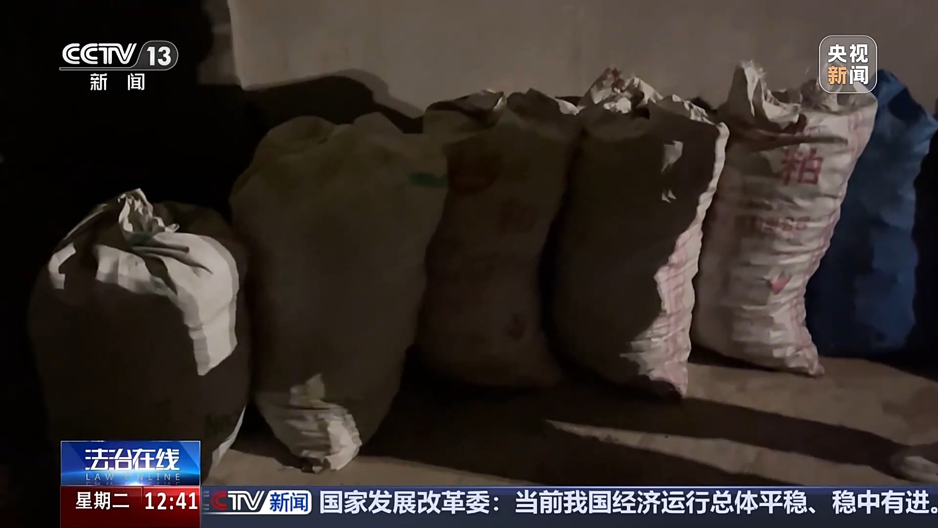 延安市公安局安塞分局砖窑湾派出所副所长 马志富:在我们这边叫仓窑,就是放杂物的东西,杂物间,窑洞整个这面墙,拿一块帆布遮着,放得齐齐整整的。现场我们拍照以后,数量一清点,78袋。