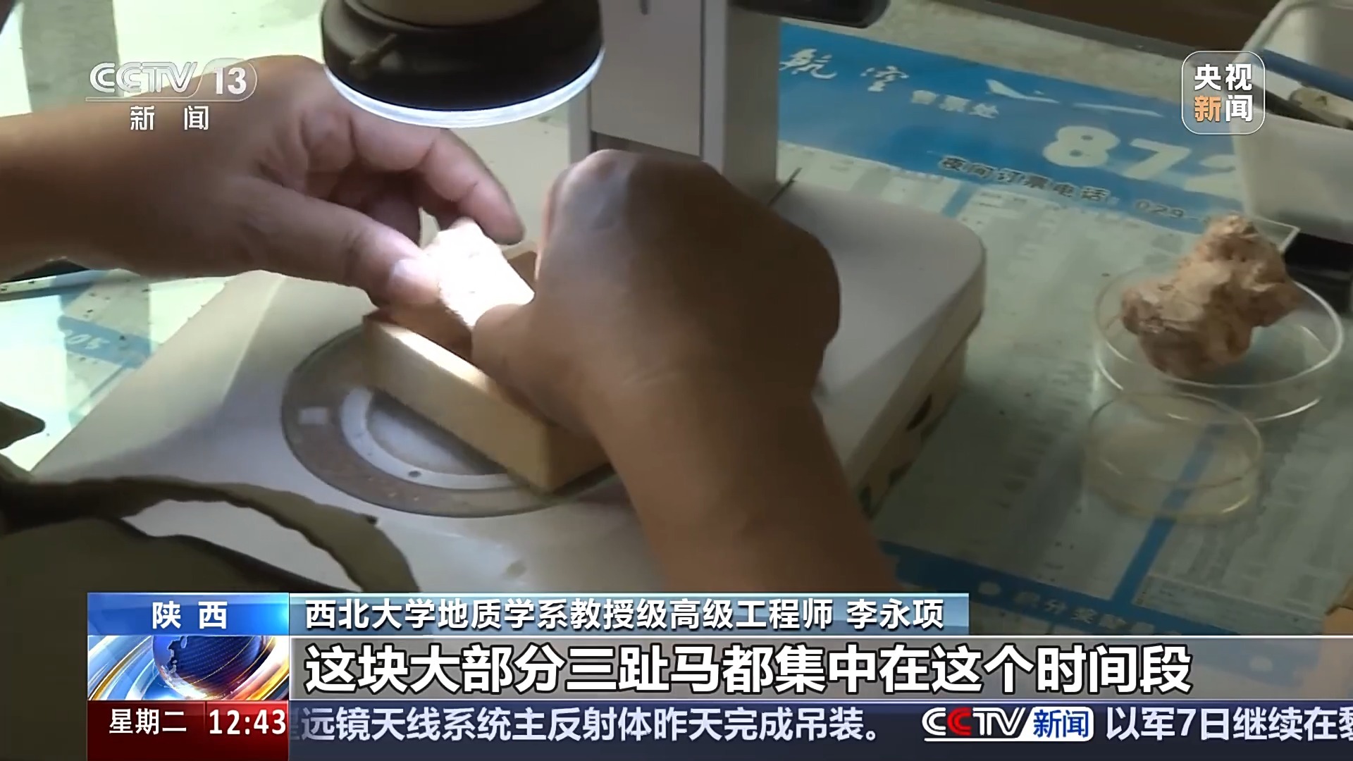西北大学地质学系教授级高级工程师 李永项:大概在一千多万年到几百万年这段时间里我们叫做新近纪,大部分三趾马都集中在这个时间段,很少量的存到250万年以内了,大部分在250万年以前。不可再生,绝对不可再生。