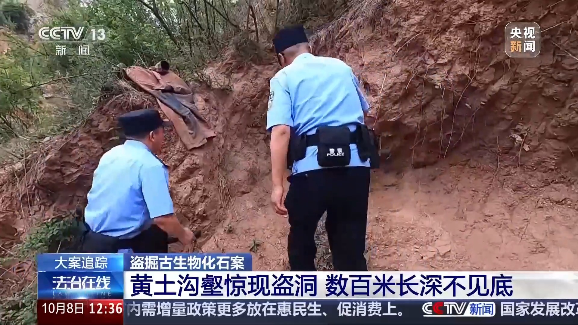 黄土沟壑惊现数百米长,深不见底的大洞,从这些盗洞入手,陕西延安警方成功破获一起盗掘古脊椎动物化石案,缴获化石达3.5吨。