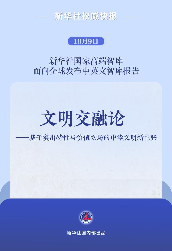 新华社国家高端智库10月9日面向全球发布中英文智库报告《文明交融论——基于突出特性与价值立场的中华文明新主张》,解读中华文明交往交流交融发展的最新成果。